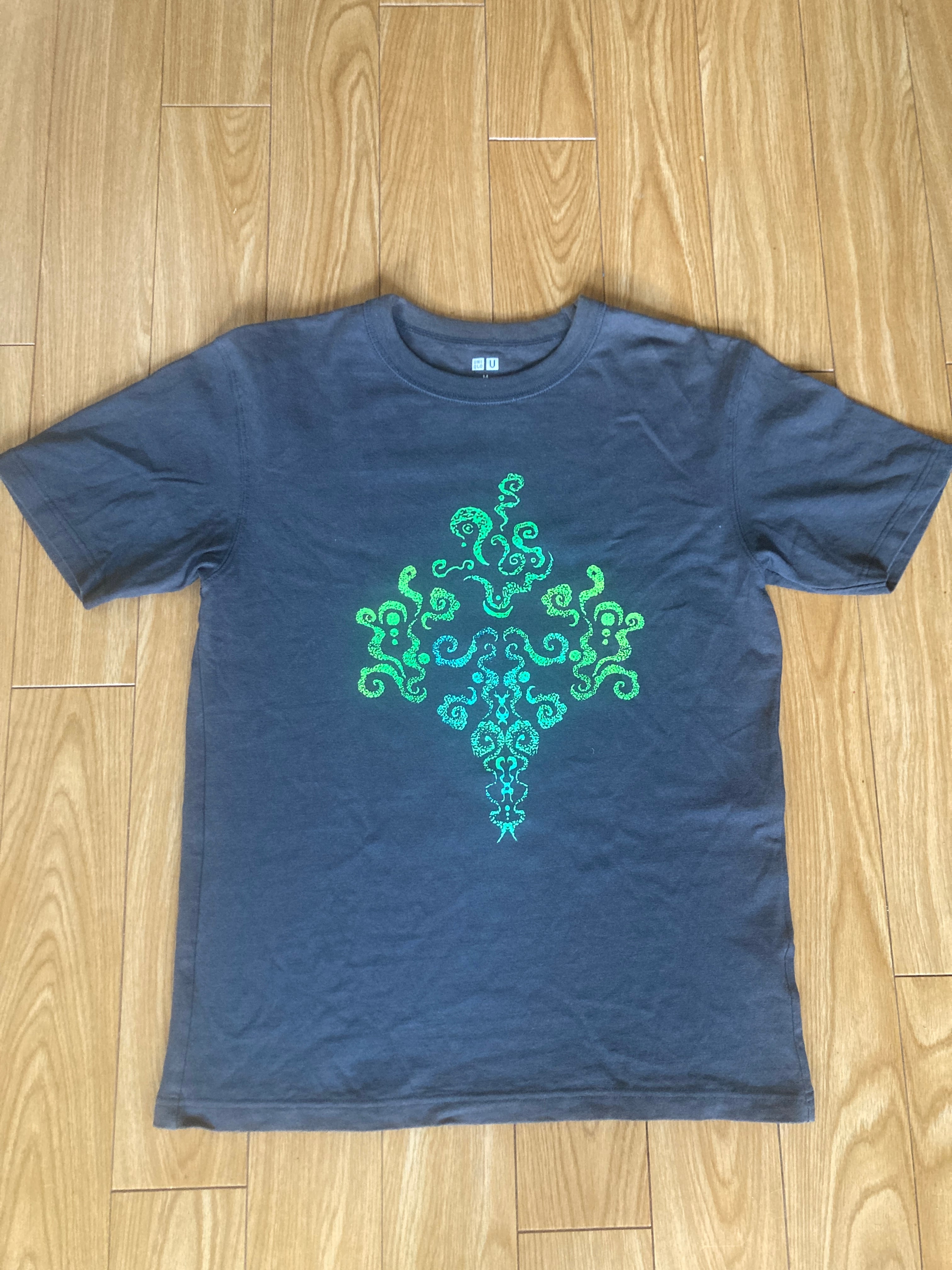 フロントには手描きで描いた点描画の一部を切り取り、再構築したオリジナルデザインを
