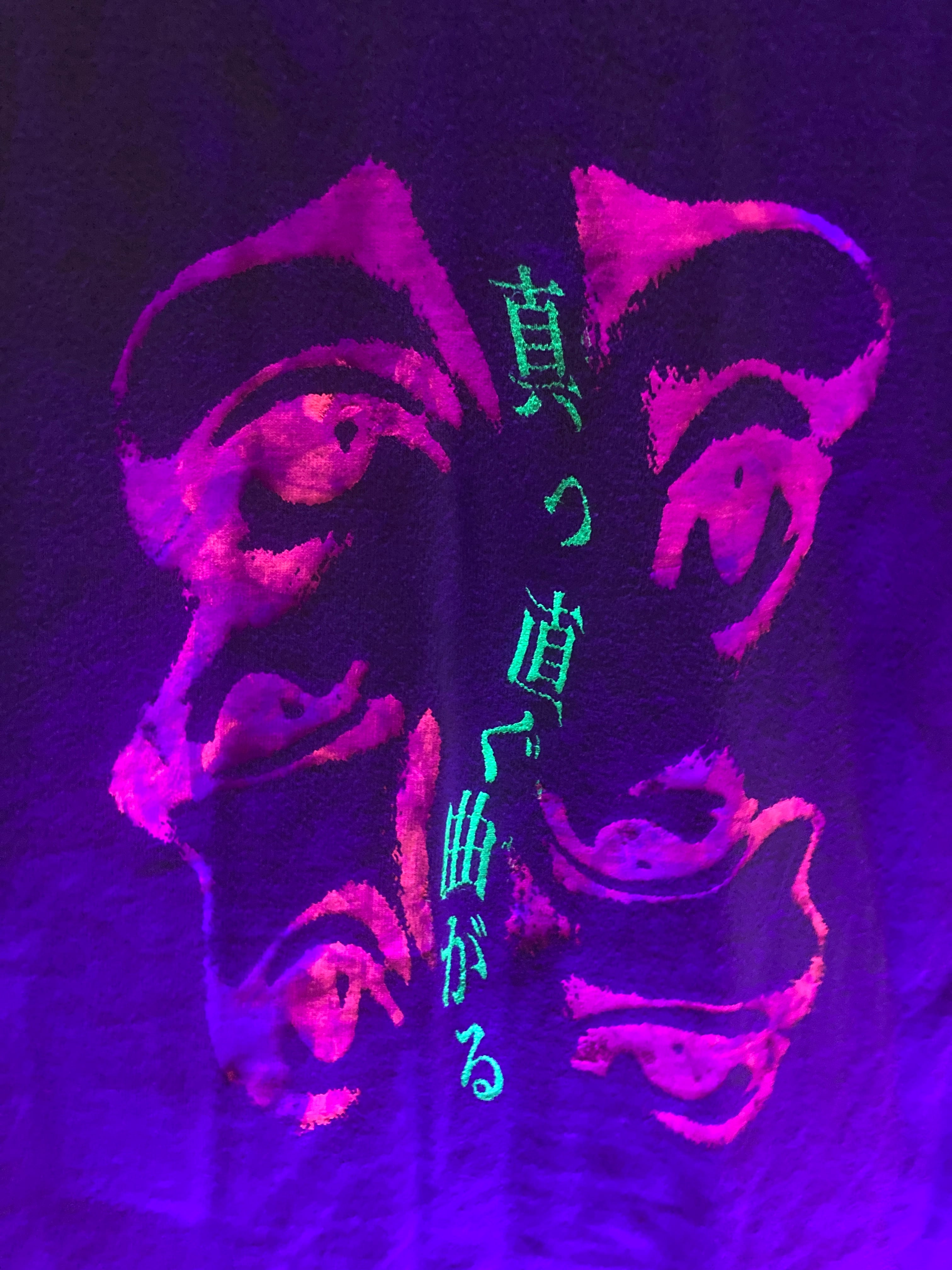 バックには僕の座右の銘である、「真っ直ぐ曲がる」をメニクルカラーでプリント
