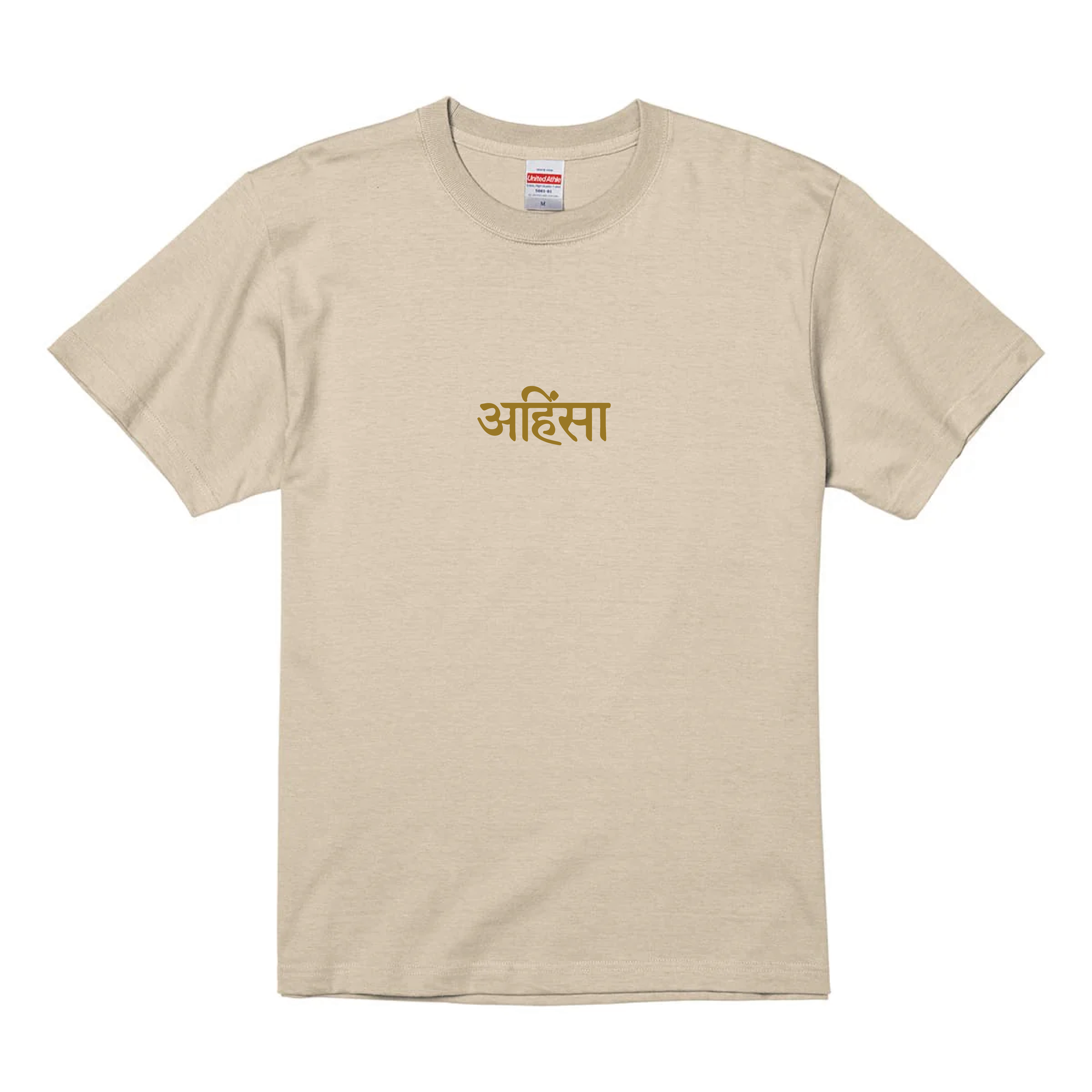 フロントには”Ahimsa” 「非暴力」という意味のサンスクリットを。